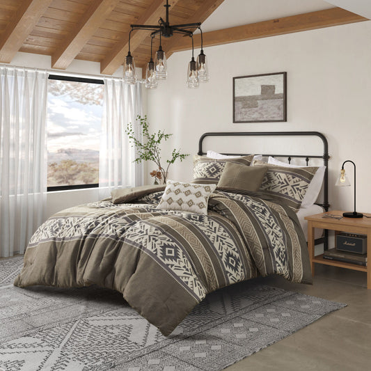 Jaxon - Stripe King Comforter Set With Bed Sheets - Taupe/Gray