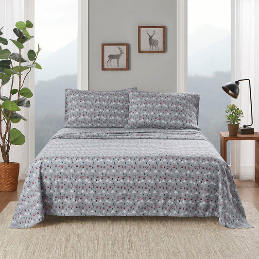 Cozy Cotton Flannel - Printed King Sheet Set - Gray Skiers