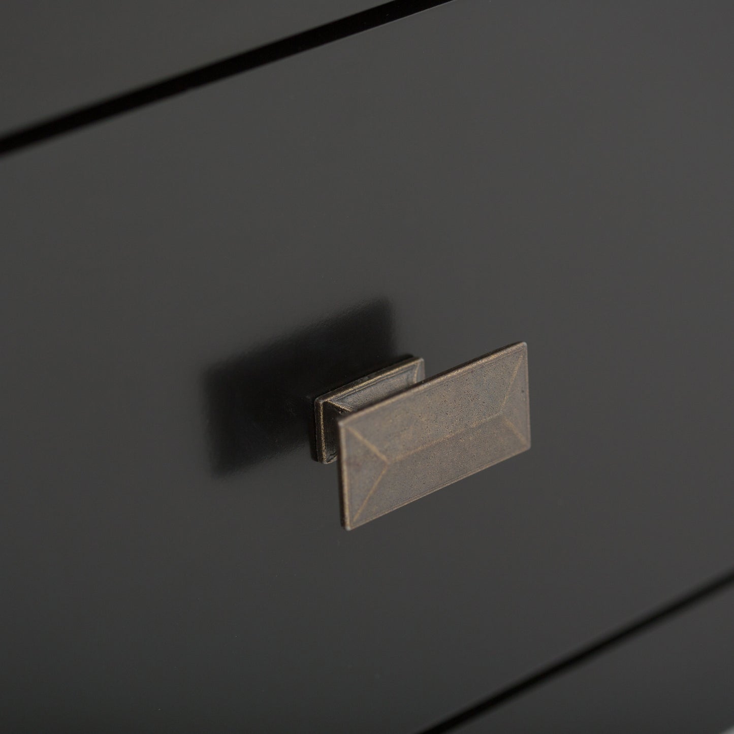 • Transitional design includes clean angle edged table, square, slightly tapered leg and rectangular antique bronze hardware