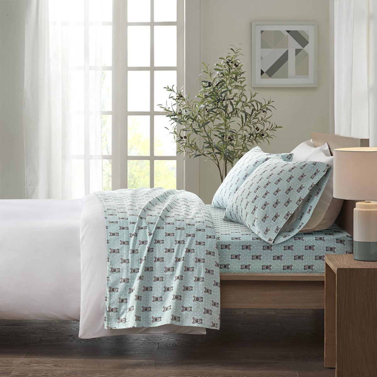 Cozy 100% Printed Sheet Set California King - Aqua French Bulldog