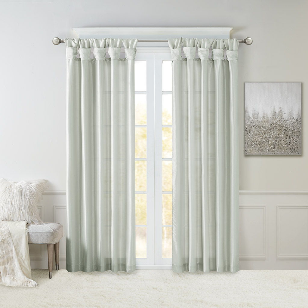 Give your home a decorator’s touch with the Madison Park Emilia Window Curtain. Made from a faux silk fabric, this elegant window curtain features a DIY twist tab top finish that creates rich, deep folds for a professional look. Added lining offers more privacy and a fuller appearance, while the luxurious sheen and rich color tone provides a touch of sophistication to your decor. While this window panel is also OEKO-TEX certified, meaning it does not contain any harmful substances or chemicals, this ensures quality comfort and wellness. Easy to hang, this tab top curtain turns any room into a gorgeous getaway. Hanging instructions are included. As shown in the image, two curtain panels need to be purchased for each window; Fits up to a 2" diameter rod.