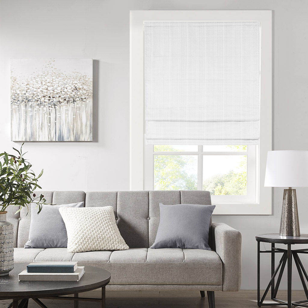 The Madison Park Galen Basket Weave Room Darkening Roman Shade offers a simple and convenient update to your home decor. This white roman shade features a basket weave texture base fabric that creates a natural look and feel. A thermal foambacking on the reverse provides energy efficiency and enhanced privacy. The cordless retraction mechanism makes it easy to open and close the window shade throughout the day, while the detachable fabric face allows for easier assembly and cleaning by lightly shaking or dusting. Though detachable from the hook and loop fastener, the top face fabric is NOT fully removable. Ready to install right out of the packaging, this roman shade can be hung inside or above the window pane allowing you to find the perfect fit for your home decor. Each shade is also OEKO-TEX certified, meaning it does not contain any harmful substances or chemicals to ensure quality comfort and wellness. Shade measures 64-inches in length and comes in 8 width options to suit multiple standard window sizes; each roman shade is sold as a single and comes with a printed instructional guide as well as an instructional video available on site. Assembly is required.