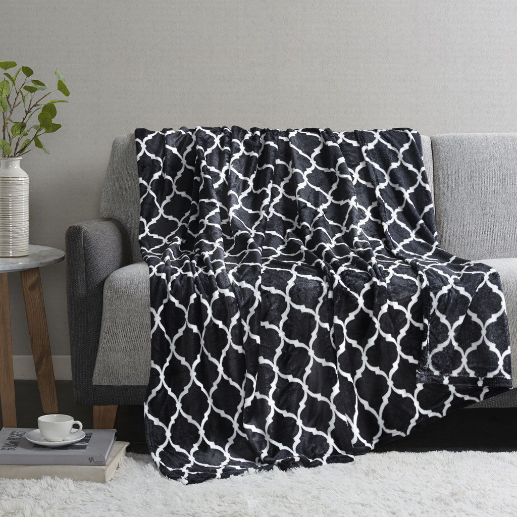 This Madison Park super soft microlight oversized plush throw features a modern ogee print that adds style and flair to any room. MicroLight is the next generation in plush throws. Our unique knitting technology allows us to craft an irresistibly soft, ultra lofty throw that is light enough to be used during even the warmest summer months and is perfect as a layering piece during the coldest of winters. This throw machine washable for easy care and OEKO-TEX certified, meaning it does not contain any harmful substances or chemicals to ensure quality comfort and wellness.